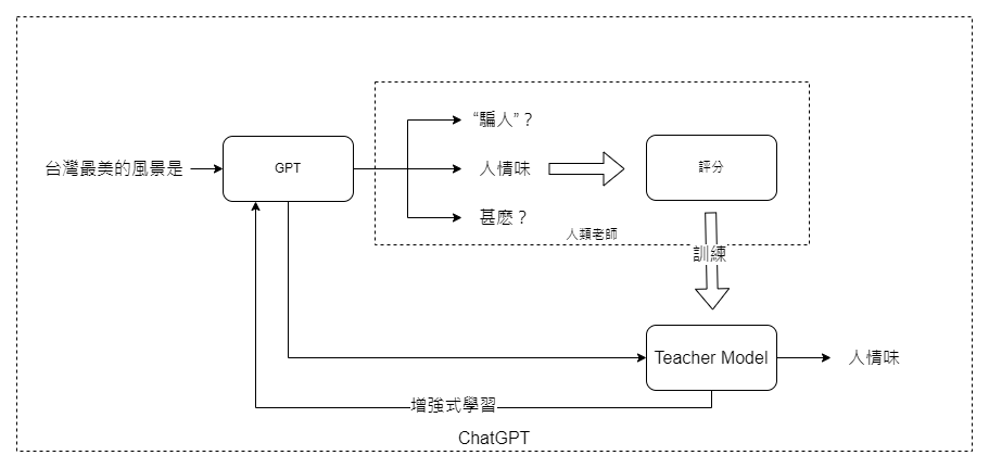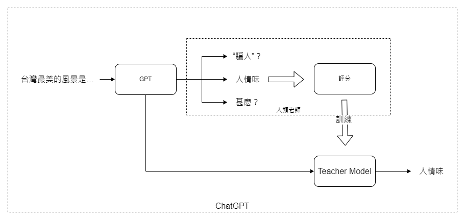所以,當你問ChatGPT:“台灣最美的風景是什麼?”時,它就能根據這個“教師模型”的建議,選出最合適、最符合大多數人期待的回答。